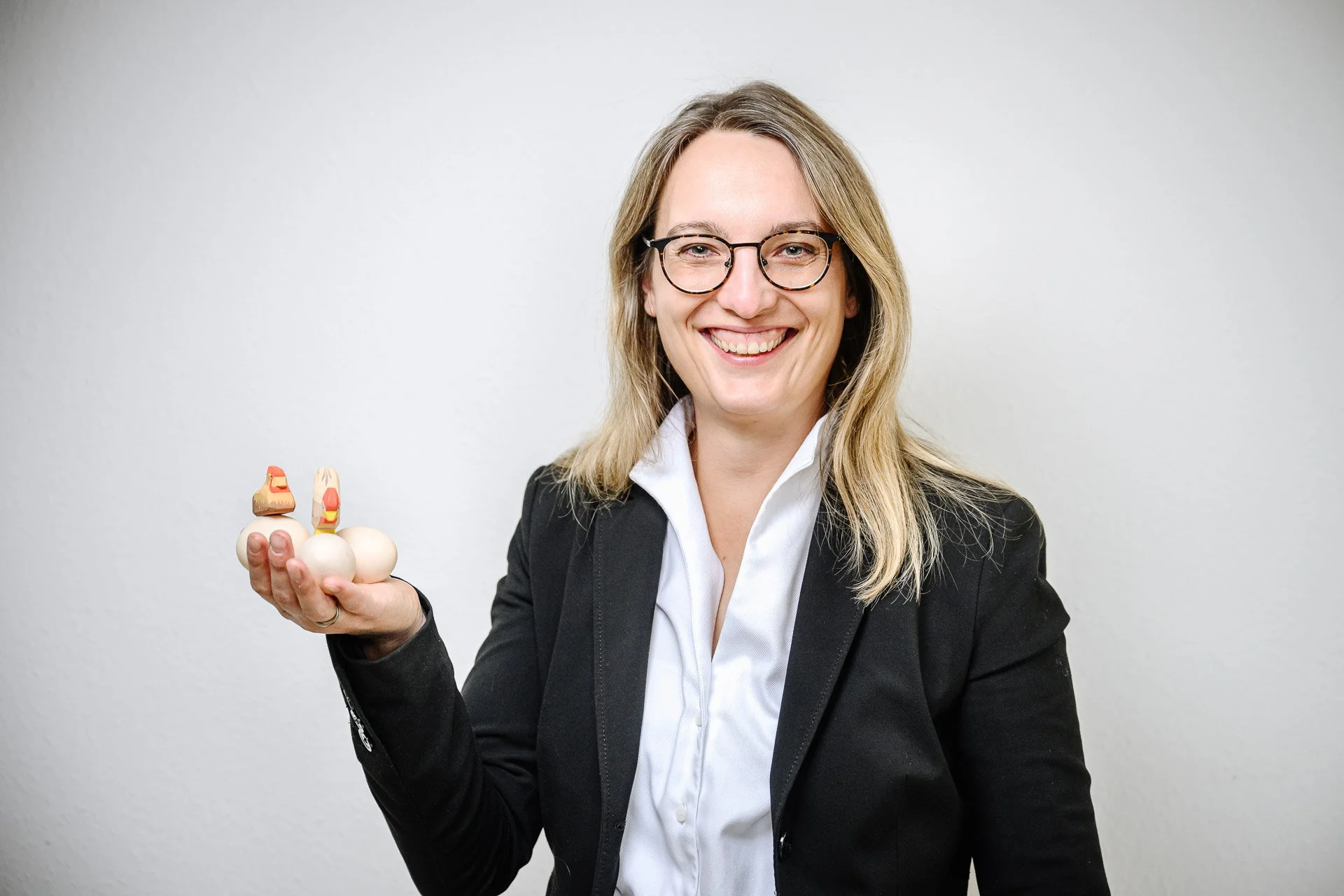 Eier! Wir brauchen Eier! Damit diese bei uns garantiert nie ausgehen, kümmert sich Vera Hofmann liebevoll um ihre heimischen Hühner, deren Wohlergehen sie sich zum Hobby gemacht hat. Mit ebenso liebevoller Zuwendung sorgt sie als Administratorin in der Kanzlei dafür, dass IT, Soft- und Hardware ständig einsatzbereit sind. Und sie ist sowieso immer da und packt mit an, wenn Not an Mann respektive Frau ist. Oder eben an Eiern.